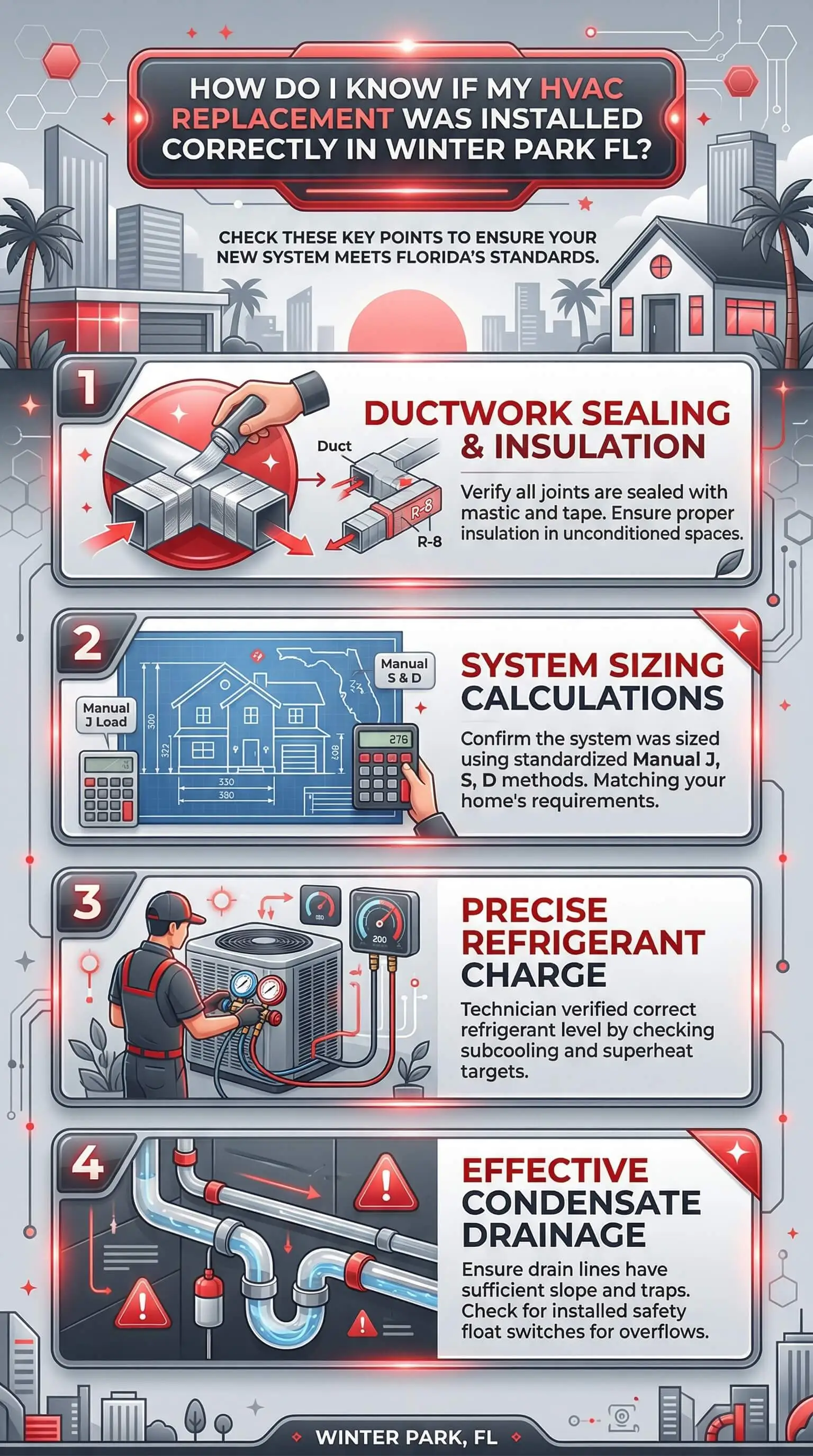 The top HVAC system replacement contractors near Winter Park, FL combine local climate knowledge with installation practices that go beyond equipment swaps — verified refrigerant charge, pulled permits, tested airflow, and sealed ductwork before the job is called complete.