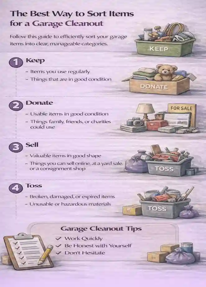 Sorting is where most garage cleanouts slow down or fail.